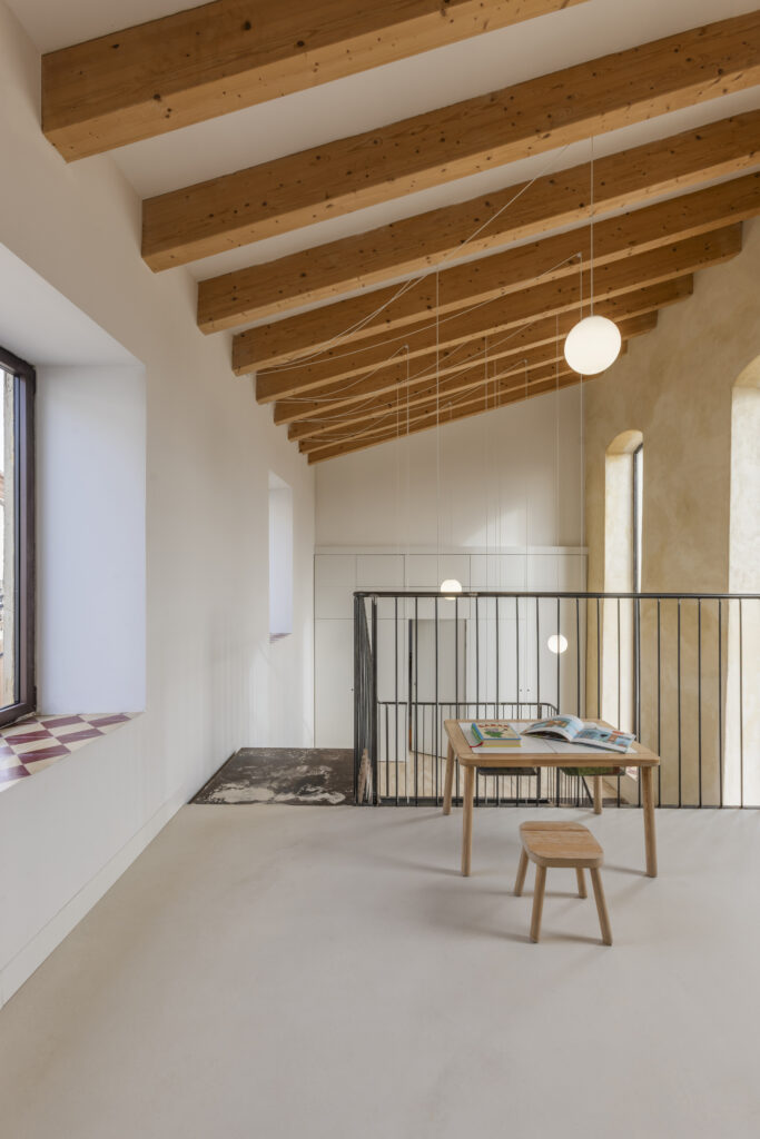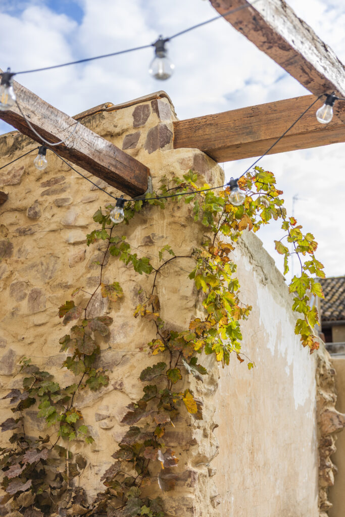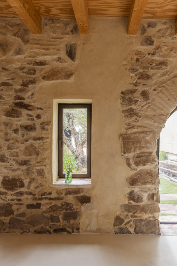 Se mantienen los muros de mampostería, reinterpretando la transición vertical con escaleras de cemento-piedra y acero corten, mientras las vigas de madera se reutilizan en el huerto y la pérgola.